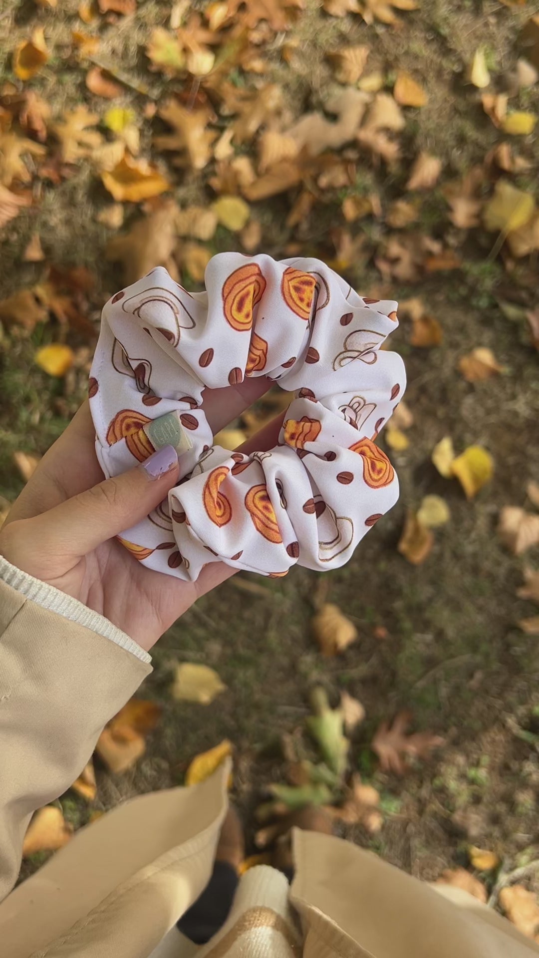 Feito em licra suave e elástica, o coffee break é o scrunchie perfeito para quem adora um toque português cheio de sabor. O padrão mistura pastéis de nata, grãos de café e chavenas de café, trazendo aquele mood cozy e irresistível para o dia-a-dia.