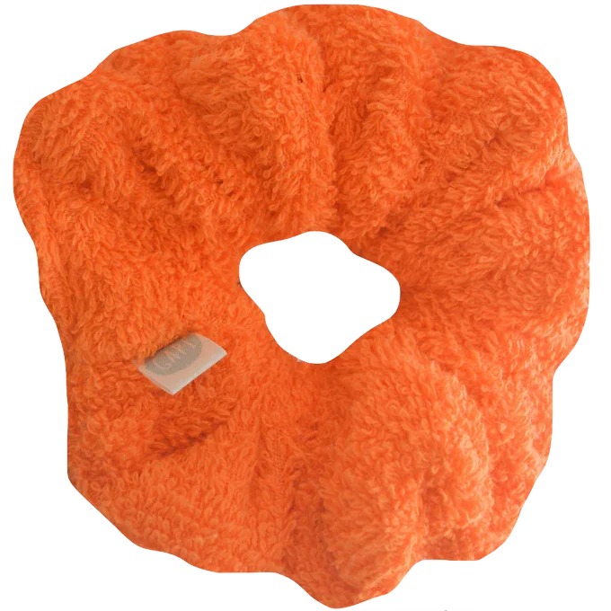 The SUNSET TOWEL scrunchie, besides being useful, adds color to your day and to all your outfits - even your pajamas.